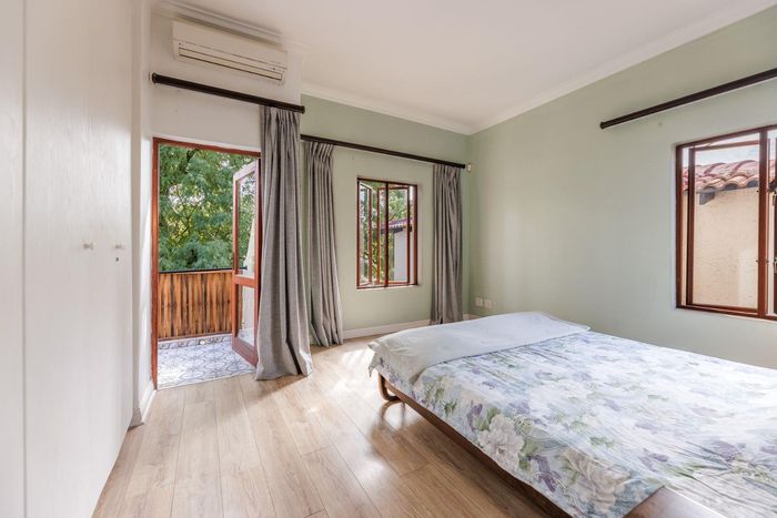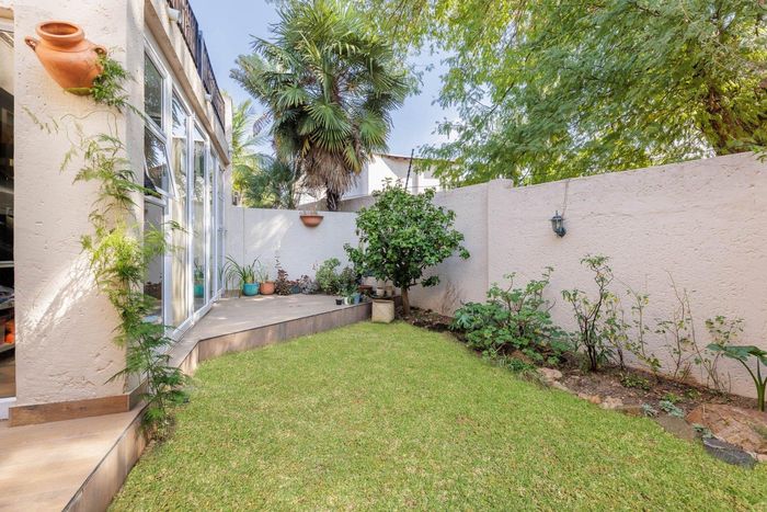 Spacious townhouse in Morningside with three bedrooms, garden, double garage, and security. Close to amenities. Offers from R2,500,000.