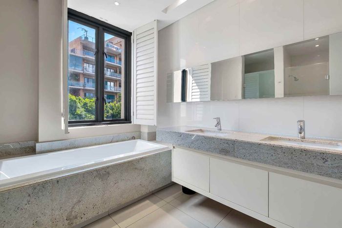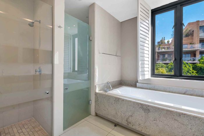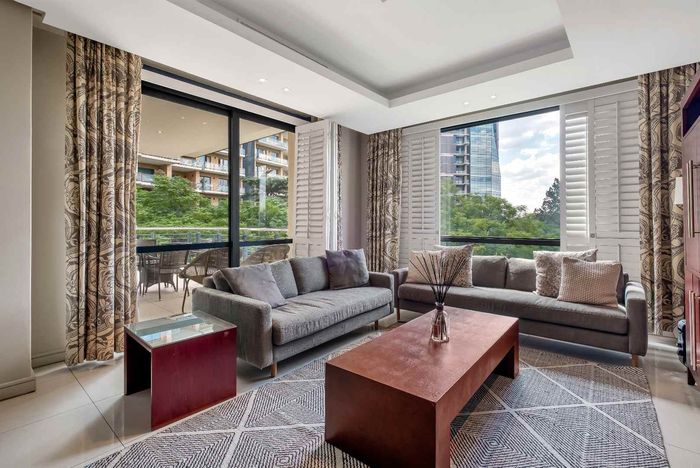Enjoy executive city living in Sandton’s premier precinct, steps from dining and finance hubs — fully furnished with Miele kitchen, two bedrooms, 2.5 baths, two covered parking bays.