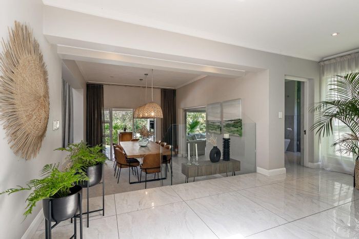 Family-focused entertainer in secure Dainfern Valley, opposite the greenbelt park — covered patio with built-in braai, pool and garden for effortless outdoor living; five bedrooms, 4.5 baths, three-car garage.