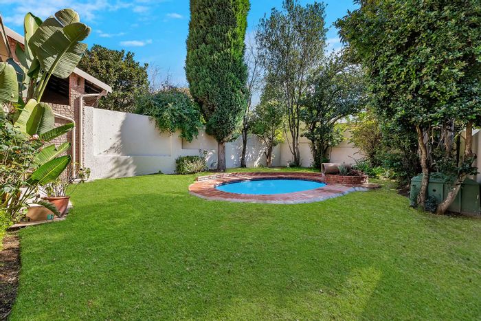 Freestanding property in Bryanston with three en-suite bedrooms, spacious garden, pool, and secure features. Ideal family home.