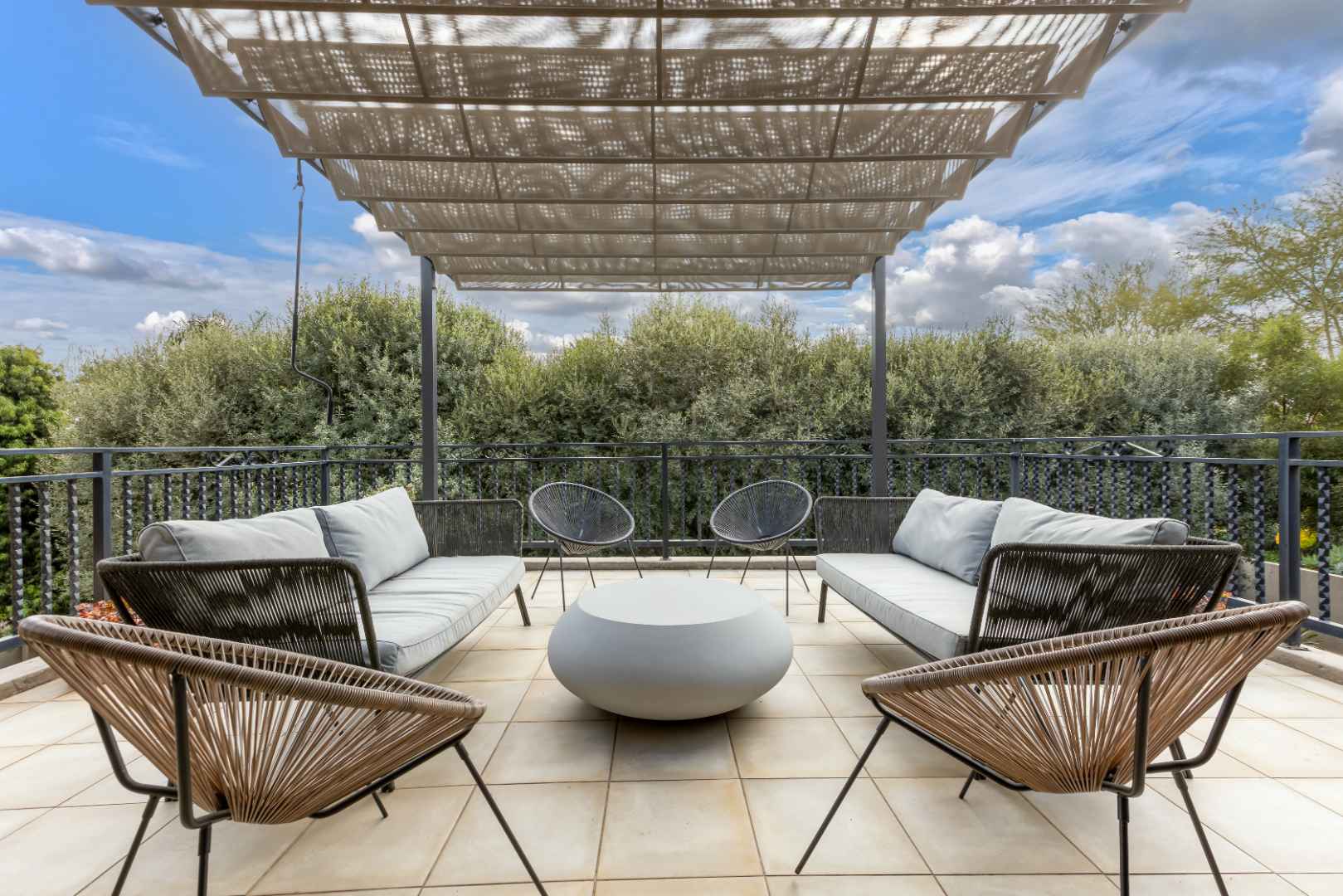 The upstairs floor plan boasts 3 sun-filled bedrooms, with 2 full bathrooms (MES). The air-conditioned master bedroom is delightfully spacious with a walk-in dressing area and full en-suite bathroom with his and her vanities. The master suite opens onto a spacious balcony with a pergola sheltering you from the sun - this boasts a gorgeous view of your garden below and surrounds.