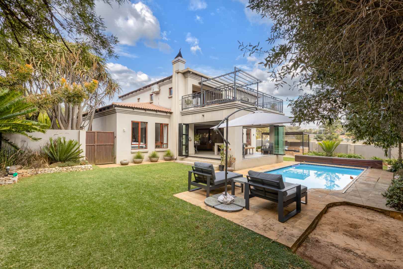 This beautiful home offers the following extras: Double automated garage with direct access into the kitchen scullery, partial air-conditioning, LED lighting throughout, deluxe staff accommodation, investor system with a battery backup, rain water harvesting water tank, plus the home is fibre ready.
