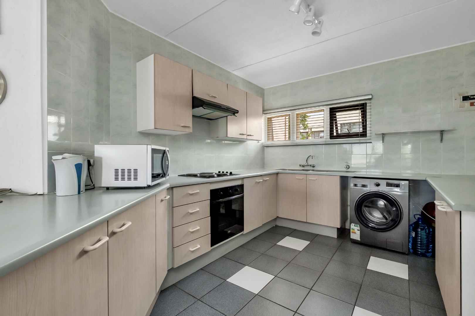 Large light and bright open plan lounge and dining area, spills onto a sunny balcony, the perfect spot for entertaining. The sizeable kitchen features a breakfast nook, electric stove and oven, under counter space that can accommodate three appliances plus ample built-in cupboards.